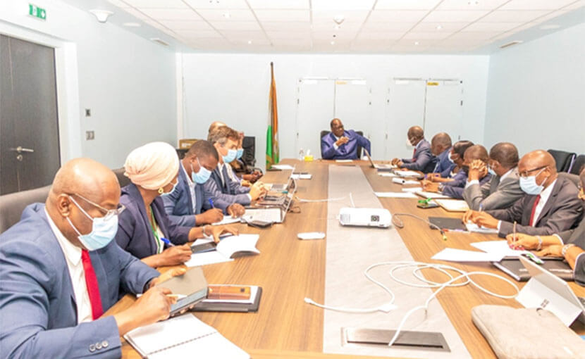 Au cours de cette réunion d’informations, le Ministre Laurent TCHAGBA a instruit les acteurs et partenaires au projet notamment certains responsables du Ministère, de l’ONEP, de la SODECI, du BNETD, de PFO et de SIEE, à prendre toutes les dispositions utiles afin que les désinfections et les rinçages du réseau et des réservoirs en cours se fassent rapidement afin que l’usine soit mise en service pour permettre aux populations d’avoir accès à l’eau potable en cette période de fêtes.
